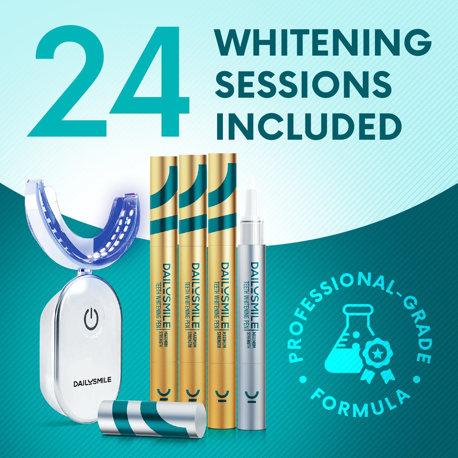 I love the simplicity of this system, but especially that it isn't as brutal as a dentist office whitening treatment. Then pens offer precision and the UV mouthpiece fits comfortably. and I notice an improvement after every use